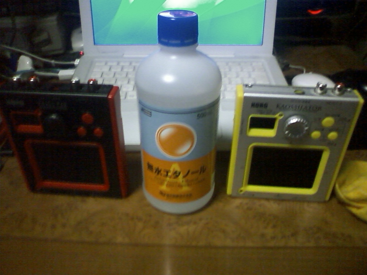 どうやら、機材の接点の掃除にはエタノール(アルコール?)がいいような話を聞いて買ってきました。プラグを一本一本お掃除しようと思います。